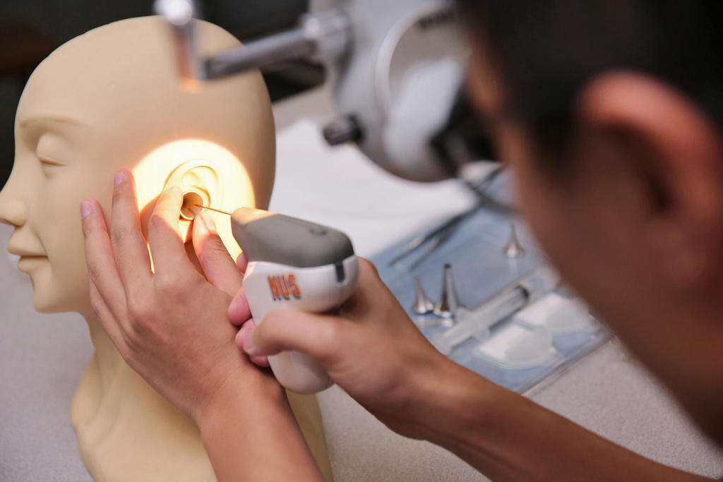 Healthcare professionals put patients under general anesthesia and shine a microscope through the ear to make a small cut in the ear drum.  The fluid accumulated is vacuumed out and a tiny, hollow plastic tube is inserted into the hole.  This is called grommet insertion.  The grommet lets air pass into the middle ear, drying up any fluid.  Patients are usually discharged on the same day after a grommet insertion.