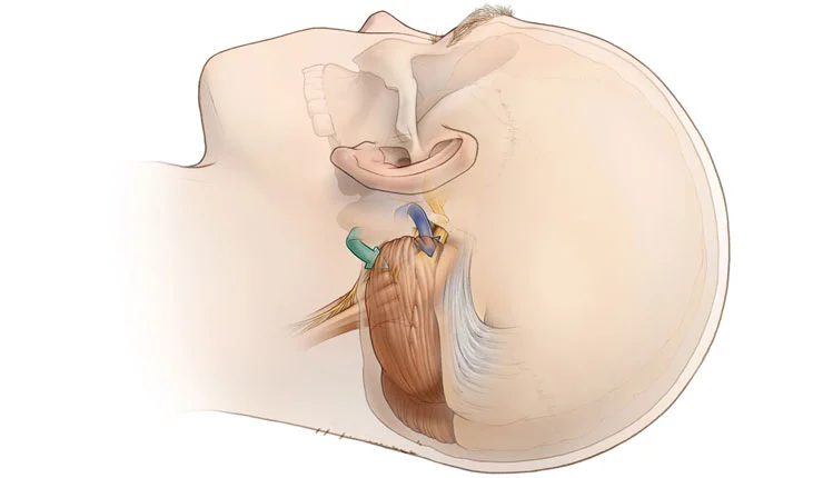 Microvascular decompression (MVD) surgery is performed under general anesthesia, through an incision and small thumbprint sized bony opening behind the ear (craniotomy). The surgeon peers into the opening through an operative microscope, looks around the cerebellum (a structure of the brain) and visualizes the trigeminal nerve as it arises from the brain stem