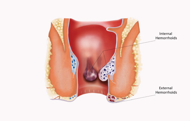 Piles may be caused by more than one factor. Piles can be either internal or external, and patients may have both types. External piles occur below the dentate line and are generally painful. When inflamed they become red and painful, and if they become clotted, they can cause severe pain and be felt as a painful mass in the anal area. Internal piles are located above the dentate line and are usually painless. Dentate line is a line seen in the anal canal that demarcates the area with pain sensation from that without it.