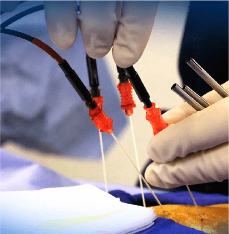 During this technique a thin radiofrequency catheter is inserted into the damaged underlying vein with incompetent valves. The catheter is then advanced under duplex ultrasound guidance to the upper end of the abnormal vein. Local anesthesia is then delivered to the entire vein and the radiofrequency catheter is then opened so that the “prongs” contact the inner surface of the vein wall. The RF catheter is then slowly withdrawn back through the vein while delivering RF energy along the entire length of the abnormal vessel. This heats the vein causing it to contract, fibrose and eventually completely close.
